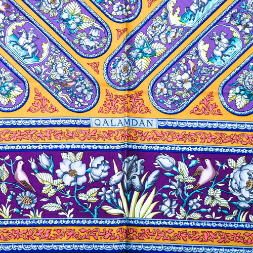 付属品:ブランド袋 素材:シルク100% サイズ:90 × 90cm 生産国:フランス タイトル:QALAMDAN 参考価格:57,200円 状態A ダメージが少なく状態の良い美品 素材シルク100% カラーパープル オレンジ マルチカラー 縦横9090 商品詳細