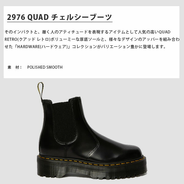 2976 QUAD チェルシーブーツ そのインパクトと、履く人のアティチュードを表現するアイテムとして人気の高いQUAD RETRO(クアッド レトロ)ボリューミーな厚底ソールと、様々なデザインのアッパーを組み合わせた「HARDWARE(ハードウェア)」コレクションがバリエーション豊かに登場します。